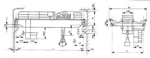 本产品各机构均按重级工作设计制造。起升机构为小车型,结构新颖、紧凑、自重轻、高度低,对于建筑高度较低的旧厂房更为适用。(原是电单基础可更换轻双起重机)。